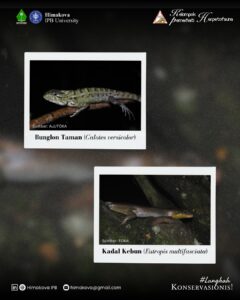 Kelompok Pemerhati Herpetofauna “Python” telah berhasil mengidentifikasi keberadaan beberapa spesies herpetofauna penting dalam kegiatan monitoring yang dilaksanakan pada Jumat, 25 April 2025 di jalur Kandang Fapet dan Kolam FPIK.
